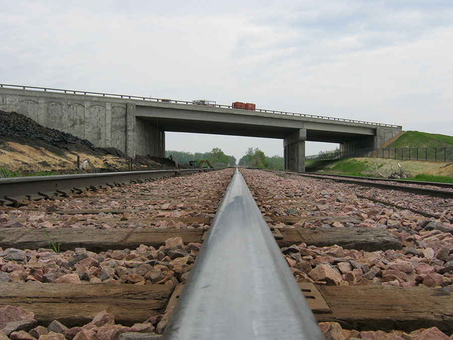 During construction of a multi-year, $25 million road project in Blue Earth County on CSAH 12, an embankment leading to a bridge failed, temporarily affecting service on the DM&E Railroad's mainline that runs along the base of the embankment.