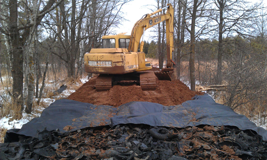 Property owners along Old Town Hall Road in Crosby Township were experiencing difficulty in accessing their hunting shacks and other buildings. The road, originally wet and frost-susceptible, was difficult for drivers to use as it crossed a wet land area. In 2011, Green Aggregate Fill (shredded, recycled tires) was installed as an aggregate substitute in the road’s reconstruction to provide a wetland crossing and add insulating qualities. Now, shredded, recycled tires are working to reduce frost activity and prevent damage to the road bed.